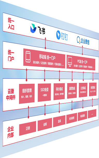 对协作平台提供支持服务,,,,支持企业应用与协作平台对接,,包含组织同步、、消息集成、、、待办集成等。。。支持目前主流的协作平台:钉钉、、、、企微和飞书。。